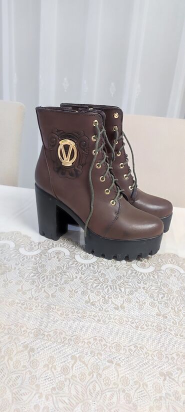 Qəhvəyi rəngdə, qalın dabanlı və platformalı P.Letto brendinə məxsus bağcıqlı botilyonlar.2 defe geyinilib teze kimidir