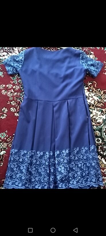 Ölçü barədə info şəkillərdə dəqiq göstərilmir; orta ölçü qamət üçün uyğun görünür. İncə krujeva qollar və ətək haşiyəsi paltara romantik və zərif hava qatır.