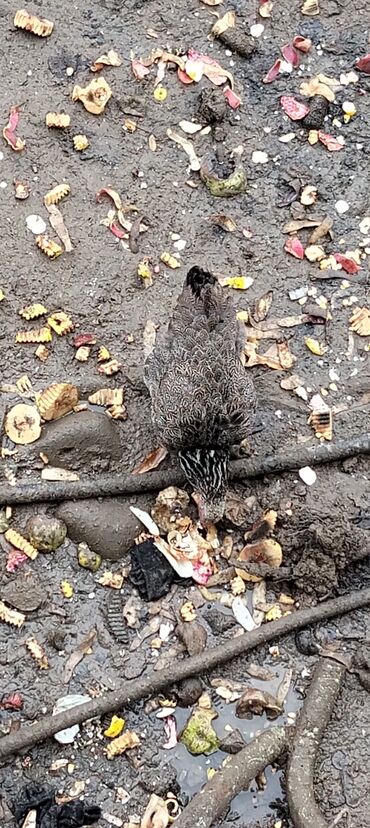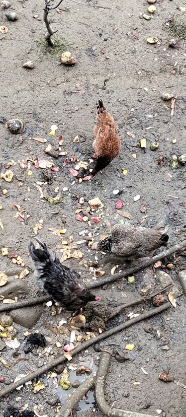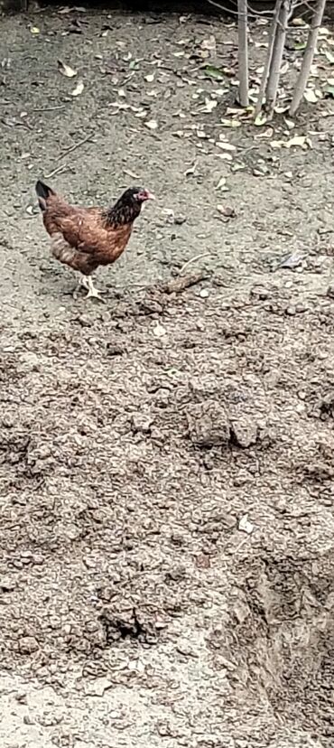 Şəkillərdəki toyuq realdır; qara tüklü, kompakt bədən quruluşlu və canlı görünüşlüdür.