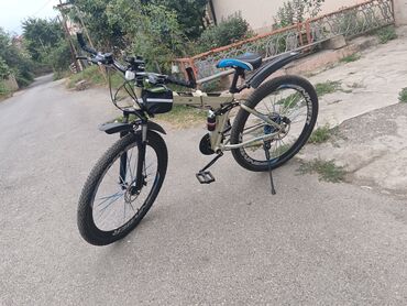 Dağ/şəhər tipli velosiped – mavi rəngdə, yığcam qatlanan gövdə. Xüsusiyyətlər: - Qatlanma mexanizmi: orta hissədən qatlanan çərçivə, daşıma və saxlama üçün rahat - 26" təkərlər, TREEX brendli disk...