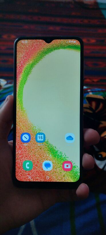 - Ön panel: damla şəklində kamera çıxıntısı olan tam ekran, One UI interfeysi.
