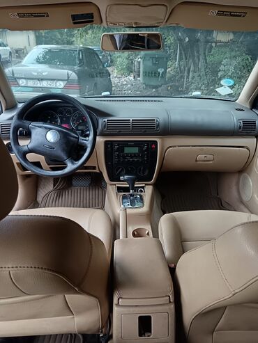 Volkswagen Passat (B5.5) sedan - Rəng: Açıq qızılı/bej - Kuzov: 4 qapılı sedan, geniş salon və iri baqaj - Mühərrik: Benzin (şəkillərdə kapot altı göstərilməyib; Passat B5.5 xəttinə uyğun 1.6–2.0 ...