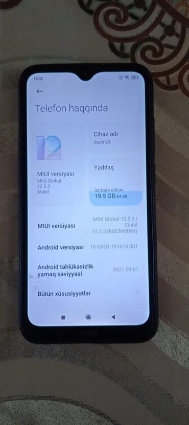 - Operativ yaddaş: 4 GB (Redmi 8 modelinə uyğun)