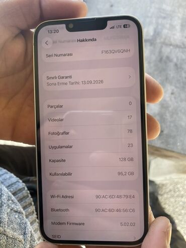 - Yaddaş: 128 GB (təxminən 95,2 GB boş yer göstərilir)