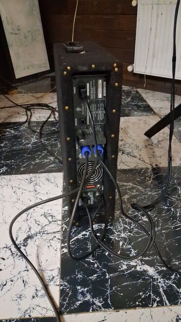 Qutu daxilində elektrik kabeli və bağlantılar görünür. Plug-and-play istifadə üçün münasib səs gücləndirici həlli.