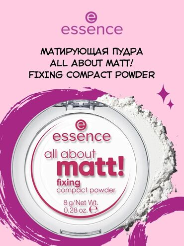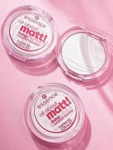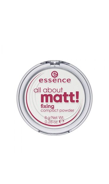 EssenceEssence All About Matt! Fixing Compact Powder – gündəlik makiyajı sabitləyən, parıltını nəzarətdə saxlayan şəffaf kompakt pudra.