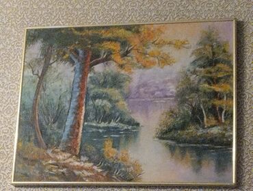 - Çərçivəli təbiət mənzərəli tablo. Çay/çay gölü sahili, ağaclar və payız tonları təsvir olunub. İnteryerdə sakit və harmonik atmosfer yaradan rəng palitrası. Nazik, açıq rəngli çərçivə ilə divardan asmağa hazır.