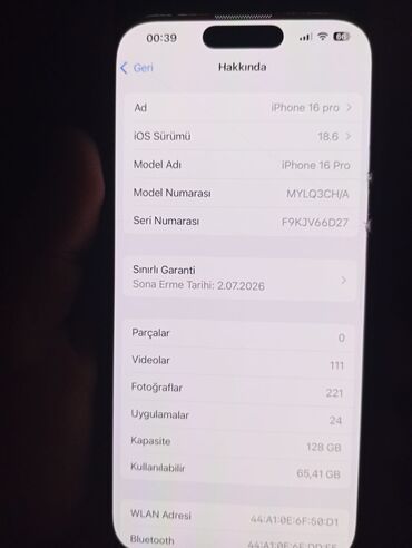 Apple iPhone 16 pro 256 gb -96 pil. acilmayib ustada olmayib əlavə suallar ucun zəng edin
