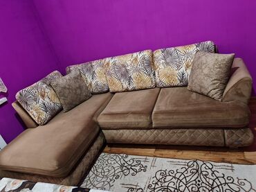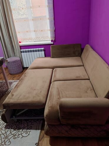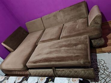 Künc divan – çevrilən mexanizmli, yuxarıdan yumşaq oturacaq yastıqları və dekorativ arxa yastıqları ilə.