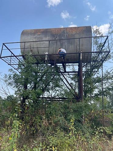 Продаю бак 20 тон , 3слоя металл, стекловата, нержавейка использовалось для воды, стояк специально для бака коррозии нету просто зеленовало, находится в ГусарахДлина бака 5 м, диаметр 2,8 м, внутри 10-20 см обшивка, значит минимум 2,6 метр диаметр. Можно вычислить сколько тонн вмешает