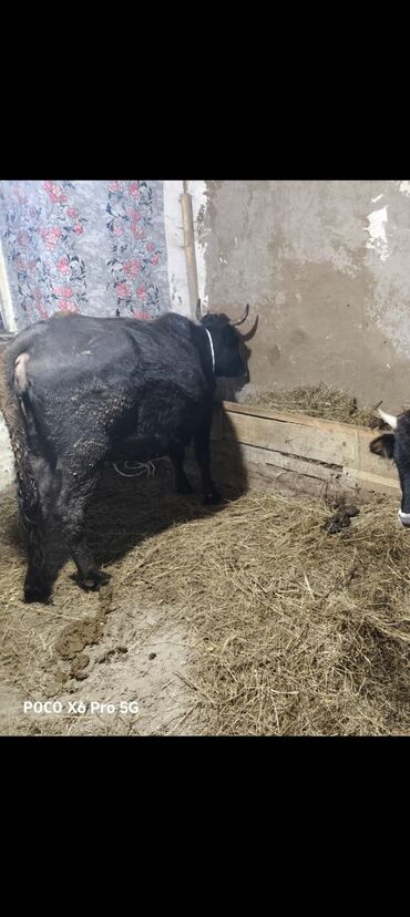 Qara rəngli inək satılır - Cins: yerli mal-qaraya uyğun, möhkəm bədən quruluşu - Rəng: tam qara, alnında azca açıq ləkə - Buynuzlu, boyun hissəsində zəncirlə asanlıqla bağlana bilir - Sakit və çev...