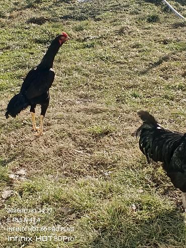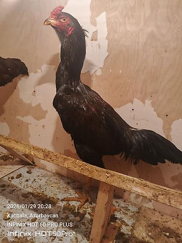 Məhsul: Xoruz (heyratı) Təsvir: - Uzunboyun, güclü quruluşlu xoruz - Rəng: qara-şabalıdı bədən, parlaq yaşıl-qara quyruq, qırmızı boyun və baş - Gagasının ucu açıq rəngli, darağı kiçik və yığcam -...