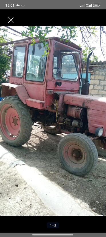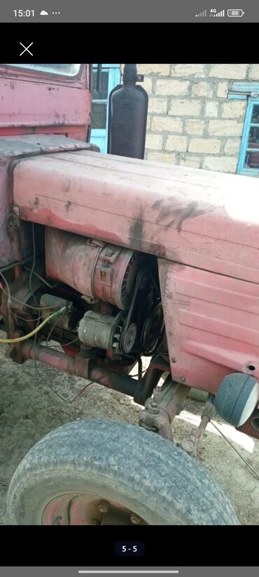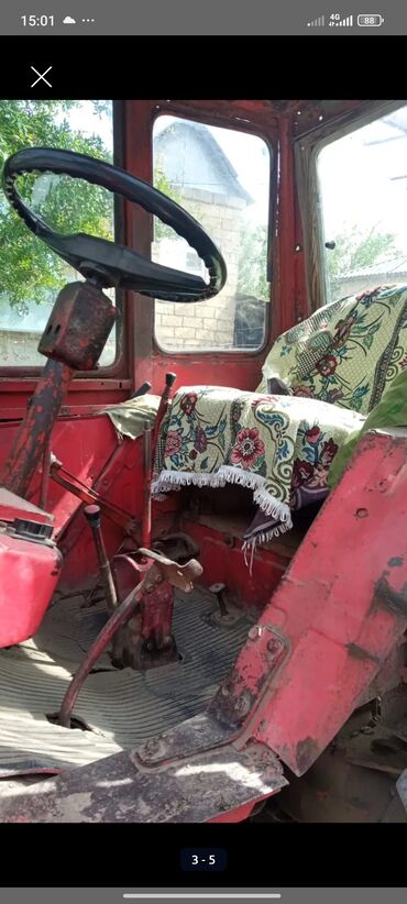 Traktor – kabinəli, 4 təkərli, arxa təkərlər iri ölçülü. Mexaniki