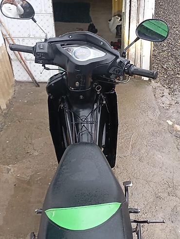 Moped/Skuter tipli motosiklet – yaşıl-qara rəng sxemi ilə Xüsusiyyətlər: - Yüngül və iqtisadi şəhər içi sürüşlər üçün ideal - Mexaniki sürətlər (ayaq dəyişdirici), elektrik və ayaqla işə salma imk...