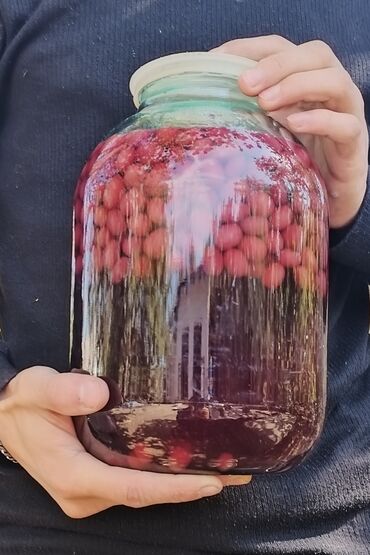 1azn. Ev üsulu kompotlar – şüşə bankalarda. - Təbii meyvələrdən hazırlanmış ev kompotları - Şəkildə: müxtəlif növlər – qırmızı giləmeyvə kompotu (moruq/qaragilə tərzində), qarışıq meyvə kompotu, ...