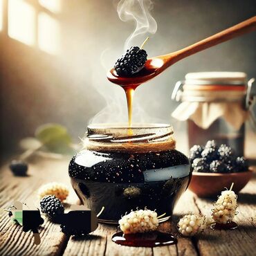 - Tekstura və dad: Qatı, axıcı konsistensiya; karamel notları ilə dərin, ətirli tut dadı.