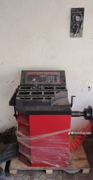- Balanslama aparatı: “Computer Balancer” paneli, rəqəmsal ekran və idarə düymələri, çəki yerləşdirmə yuvaları, ox və konuslarla təkərin mərkəzlənməsi üçün qurğu.