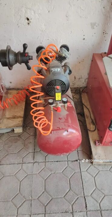 - Kompressor: 3 HP güclü iki silindrli başlıq, manometrlər və təzyiq reduktoru ilə komplekt; spiral hava şlanqı qoşuludur.
