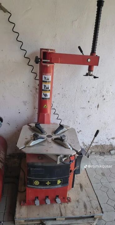 - Təkərsökən aparat: stol tipli, 4 ədəd sıxma çənəsi, şin ayağı və yan qolu, pedal idarəetməsi. Disklərin tutulması və şinin sökülüb-taxılması üçün uyğun. Korpus və iş masası metal konstruksiyalı, təhlükəsizlik nişanlaması üzərindədir.