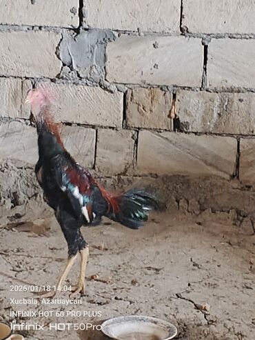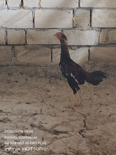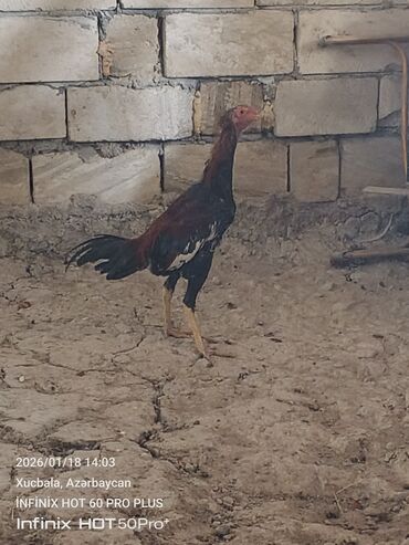 Heyratı xoruz satılır 1 il 3 aylıq. Cins: Uzunboyun, sərt bədən quruluşlu döyüş tipli xoruz (qırmızı-qara lələklər, yaşıl çalar qanadlar, uzun quyruq). Xüsusiyyətlər: - Uzun və güclü boyun, iri bəd...