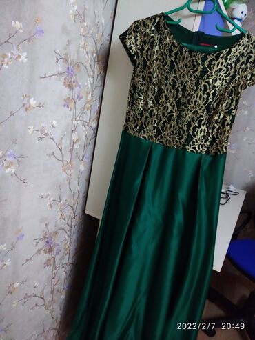 Zümrüdü-yaşıl rəngdə, uzun ziyafət/libas.1defe geyinilib,təzədi,heç bir problemi yoxdu.40-42 razmere uygundu