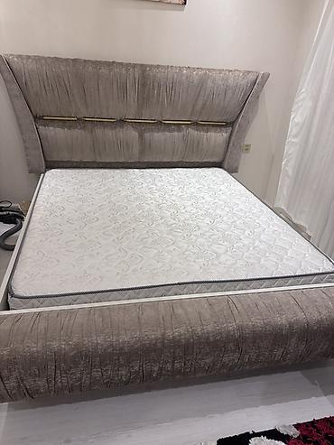 - İkinefərlik çarpayı karkası: yumşaq tekstil başlıq və ayaq hissəsi, dekorativ qızılı xətt detalları. Matrasa uyğun taxta karkas.