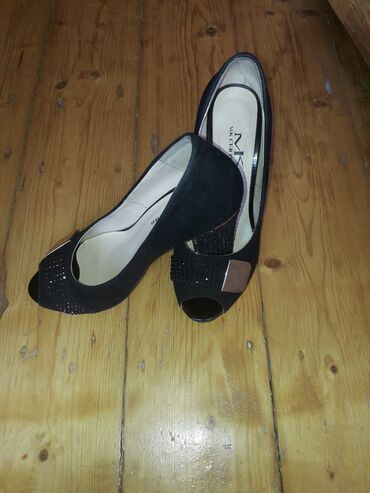 Bir neche defe toya geyilib. burnu achiqdir. 35 razmer. ancaq evin yanindan goturulme mumkundur. ve ehmedli metrosunun ustunden. unvan Xezerin kruqu . gence prospekti