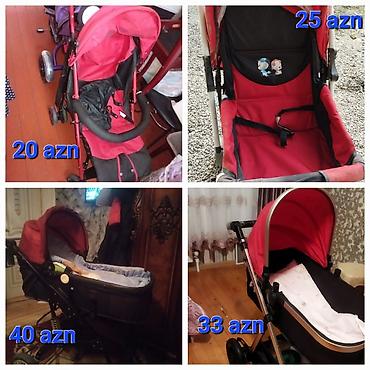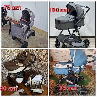 - Beşik tipli arabalar (qara/qırmızı və qara/qızılı tonlarda) – geniş beşik, böyük günlüklə, amartizasiya, səbət. Qiymətlər: 40 AZN və 33 AZN.