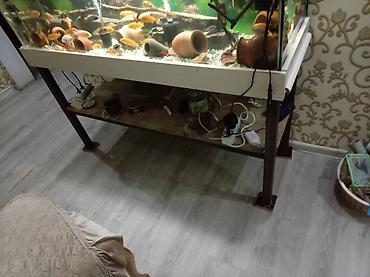 Tehim…. Akvarium satilir..1000azn.. Olcusu boyukdur. 700 lt su tutumu var.Ümumilikde 50 yaxin baliq var. Icerisinde deyeri 200 manata olan baliqlarda var. Tecili satilmalidir Unvan Gencd pr. Pano...