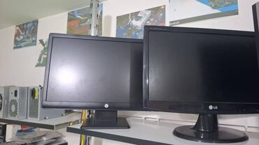 Monitorların üstündə original VGA və Power kabelləri var