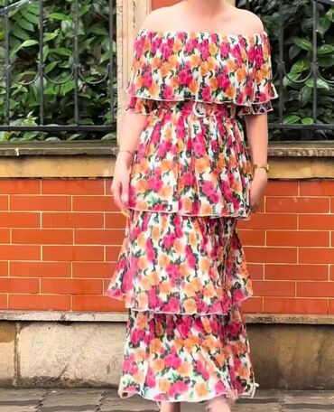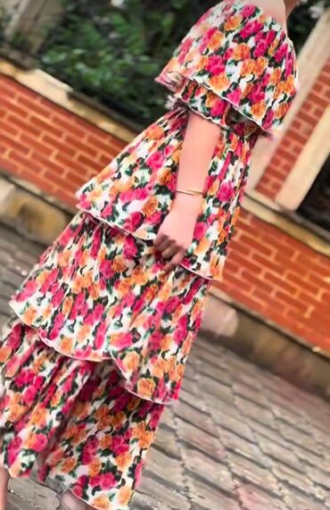 Qadın geyimləri – müxtəlif modellər S/M hamisi 1 defe geyinilib, sonuncu qara geyinilmeyib - Qara, xırda nöqtəli şifon paltar, qolsuz/şəffaf üst hissə, beldən büzgülü ətək – 11 AZN - Çiçək naxışlı,...