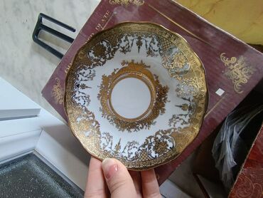 Zərif naxışlı, qızılı haşiyəli porselen çay-servis dəsti. “farfor” alman dı 60+ ilin servizidir! Dəst tərkibi (şəkillərə əsasən): - qapaqlı böyük çaydan - qapaqlı şəkər qabı - qapaqlı mürəbbə/konf...