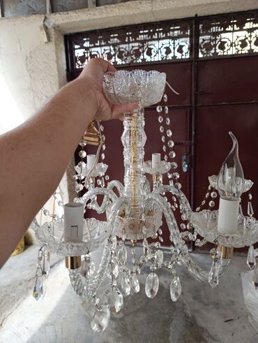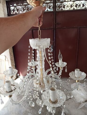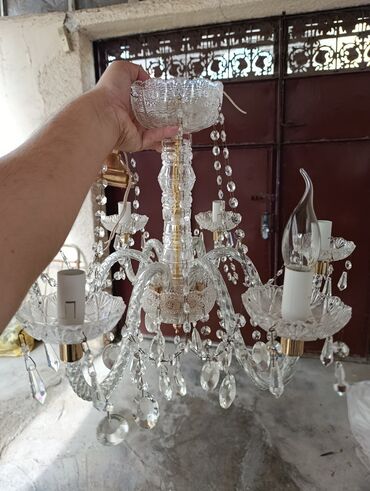 - Material: şəffaf kəsimli kristal şüşə elementlər, metal (qızılı rəngli) detallar