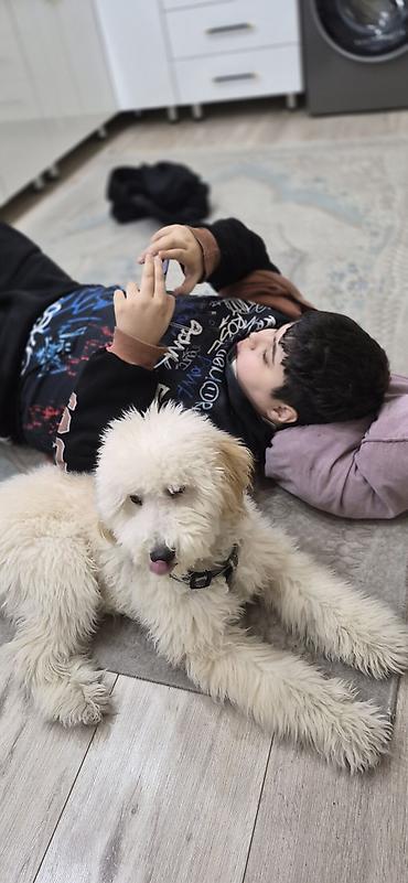Satılır – balaca, qıvrım tüklü, krem rəngli it balası. Xüsusiyyətlər: - Yumşaq, sıx və hipoallergenə yaxın qıvrım kürk - Qarışıq açıq krem-bej rəng palitrası, qara gözlər və açıq rəngli burun - Ko...