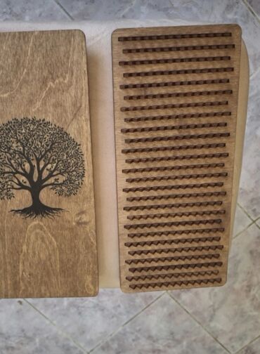Ağac materialdan hazırlanmış, üzərində ağac motivli oyma təsviri olan Sadhu lövhəsi. Bu lövhə 8 mm tikan məsafəsinə malikdir. Meditasiya və ya ayaq masajı üçün istifadə oluna bilər. Lövhənin səthi hamar, tikanlar isə düzgün sıralanmışdır, bu da rahat və effektiv istifadəni təmin edir. Gündəlik stressi azaltmaq və enerjini bərpa etmək üçün faydalı bir vasitədir.