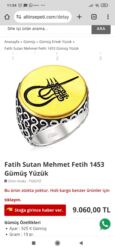 Şəkildə göstərilən nümunə sayt məlumatına görə “Fatih Sultan Mehmet Fətih 1453 Gümüş Yüzük” modelidir. Gramaj bölməsi olaraq 19 q qeyd edilib. Model kodu: TG02YZ.