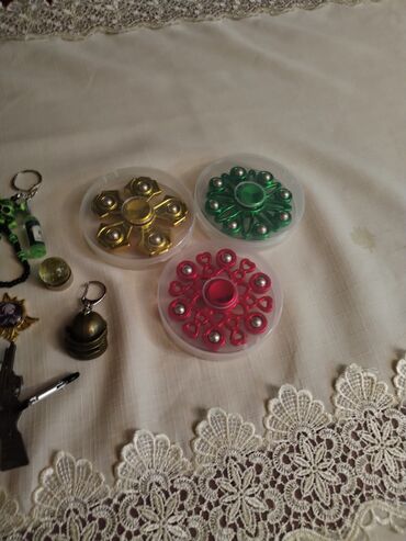 - Qablaşdırma: fidget spinnerlər şəffaf mərmər formalı qutularda; digər açarlıqlar qarışıq şəkildə.
