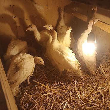- Ağ tüklü, sağlam görkəmli hinduşka cücələri.