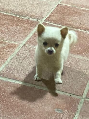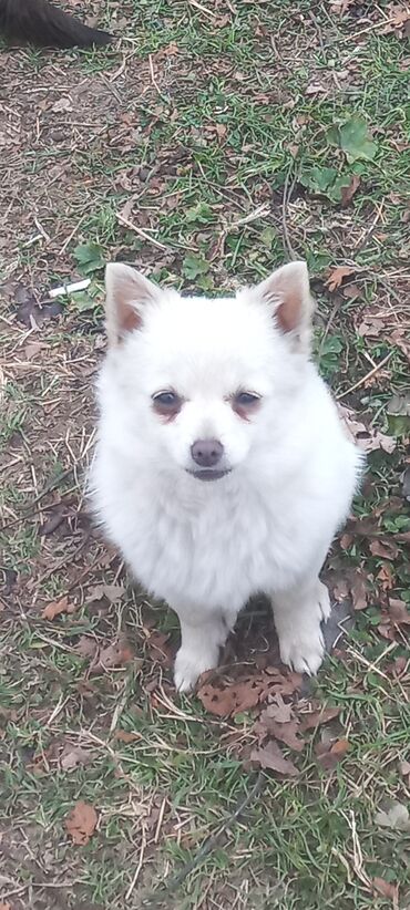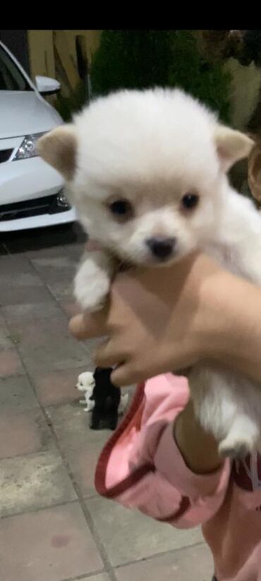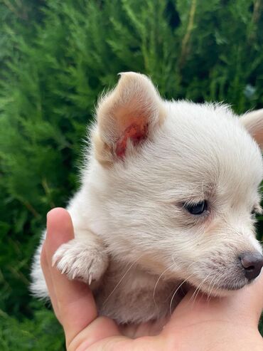 Ağ tüklü, xırda ölçülü balaca it balası