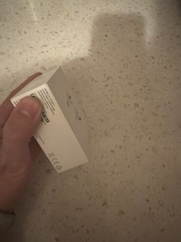 - Kompakt, kvadrat qutu dizaynı; üzərində AirPods təsviri və texniki nişanlamalar (CE və s.)