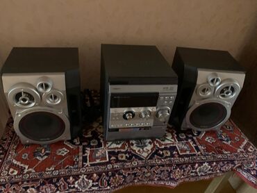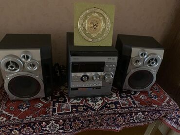 Komplekt: mərkəzi blok + sağ və sol kolonka. Evdə musiqi dinləmək, radio və CD/kaset səsləndirmək üçün klassik mini sistem.