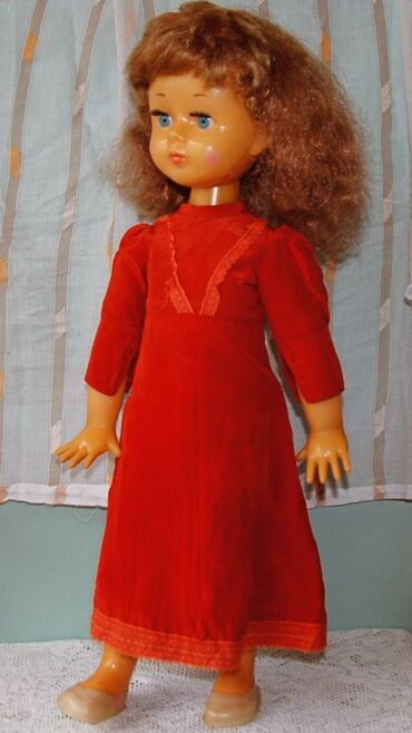 Oyuncaq kukla sovetin vaxtinan qalmis - Material: plastik gövdə, vinil üzdə detallı cizgilər - Saç: qıvrım, tünd qəhvəyi, daraqlana bilir - Gözlər: böyük və ifadəli - Boy: təxminən 40–45 sm - Gey...