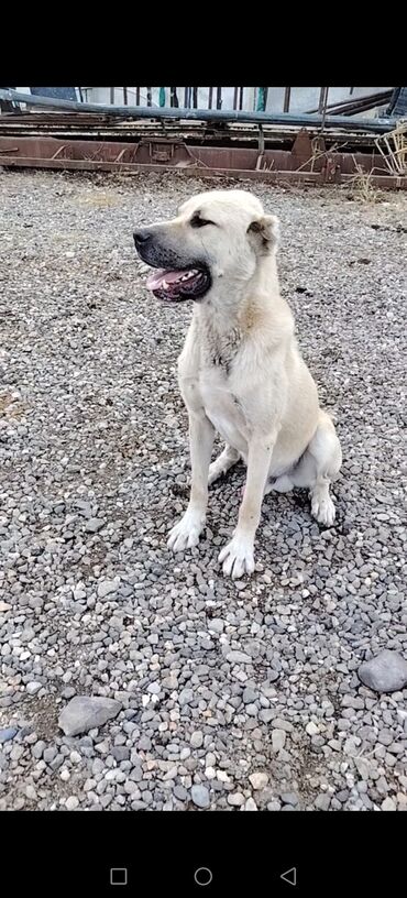 Kangal tipli böyük cins it - Cins: Kangal/Anadolu çoban iti tipli - Cinsiyyət: erkək - Rəng: qumlu-krem kürk, ağız və maskada tünd boz-qara çalarlar, ağ pəncələr - Boyut: iri, güclü skeletli və uz...