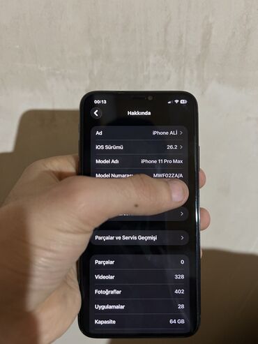 IPhone 11 Pro Pil 70% True Tone , Face iD xerwey iwleyir Zavod ustada olmayib, karobkasi ve usb kabeli verilecek.