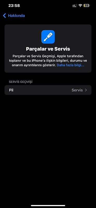 - “Parçalar və Servis” menyusunda “Pil” üçün servis qeydi görünür