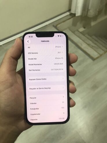 Məhsul: Apple iPhone 13min Her weyi iweyir sadece ekran batarya qoyulub