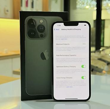 İphone 13pro max 256gb Alpine Green Pil 77% Alınan gündən kaburada işlədilib nöqtə cızıq belə yoxdur Dual Sim kart