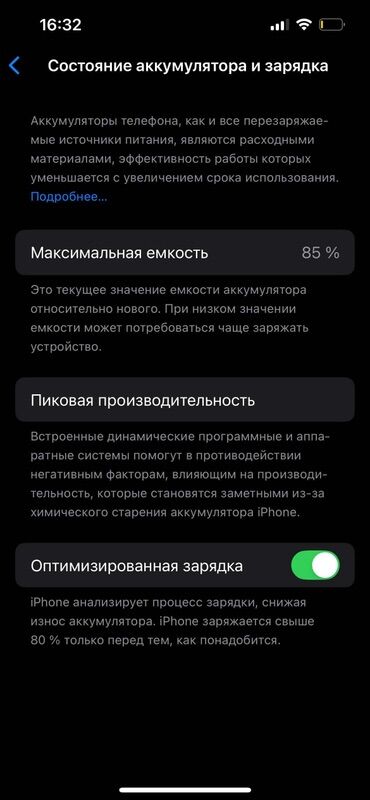 - Batareya: Ekstandart məlumat ekranında “Maksimum tutum 85%” göstərilir (şəkildə)