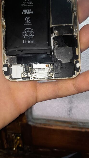 Arxa tərəfində "Apple" loqosu olan qızılı rəngli smartfon. Cihazın ön tərəfində çatlamış ekran və ana düymə yerləşir. Üst hissədə kamera və flaş var.ZAPCAS isleyir ama tam arxayin deyilem deye zapc...