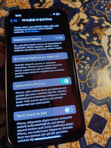 - Batareya: Pil Sağlamlığı 100% (şəkildə göstərilib); Optimize edilmiş şarj funksiyası aktivdir
